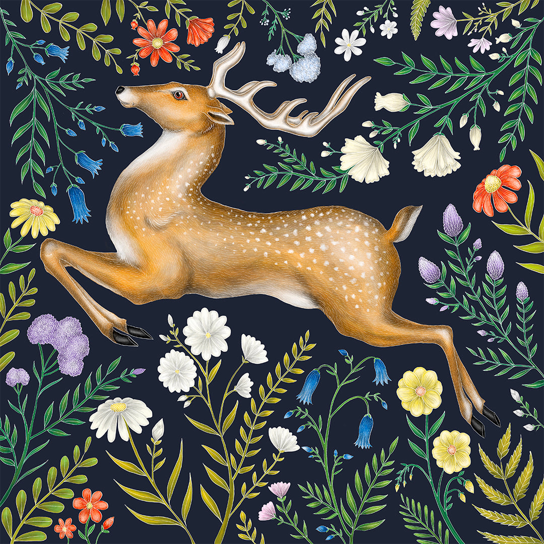 Deer & Wildflowers Fine Art Print