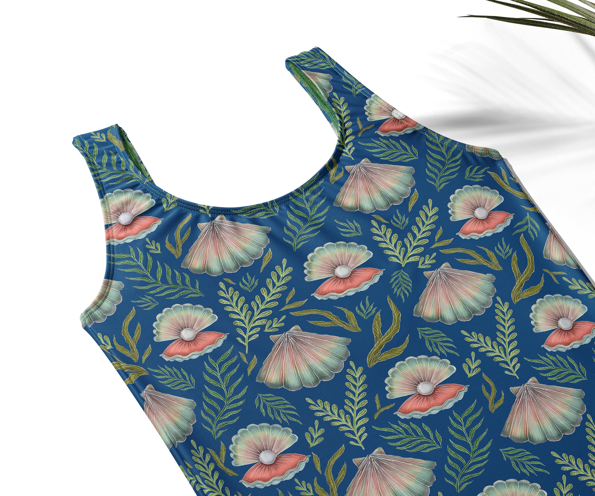 Limited Edition Swimsuits - UV resistant - Handmade in London - Pearl's Dream (The Shell Pattern) Deep Blue