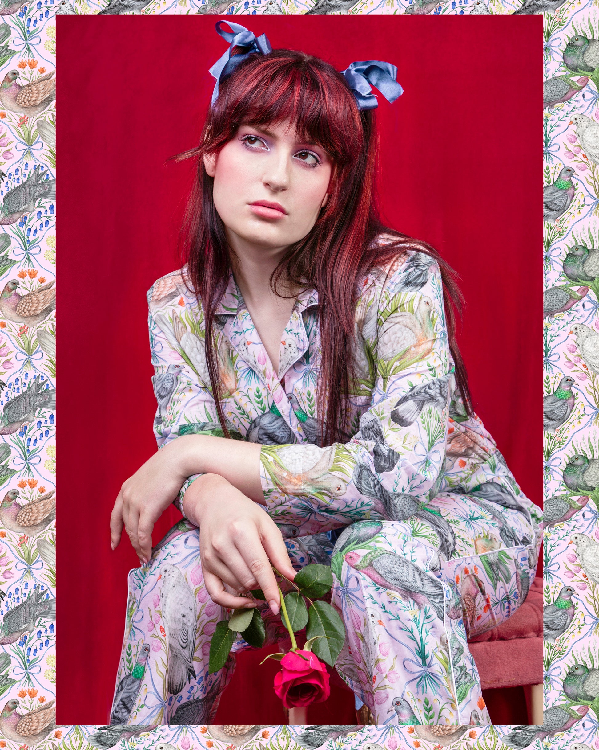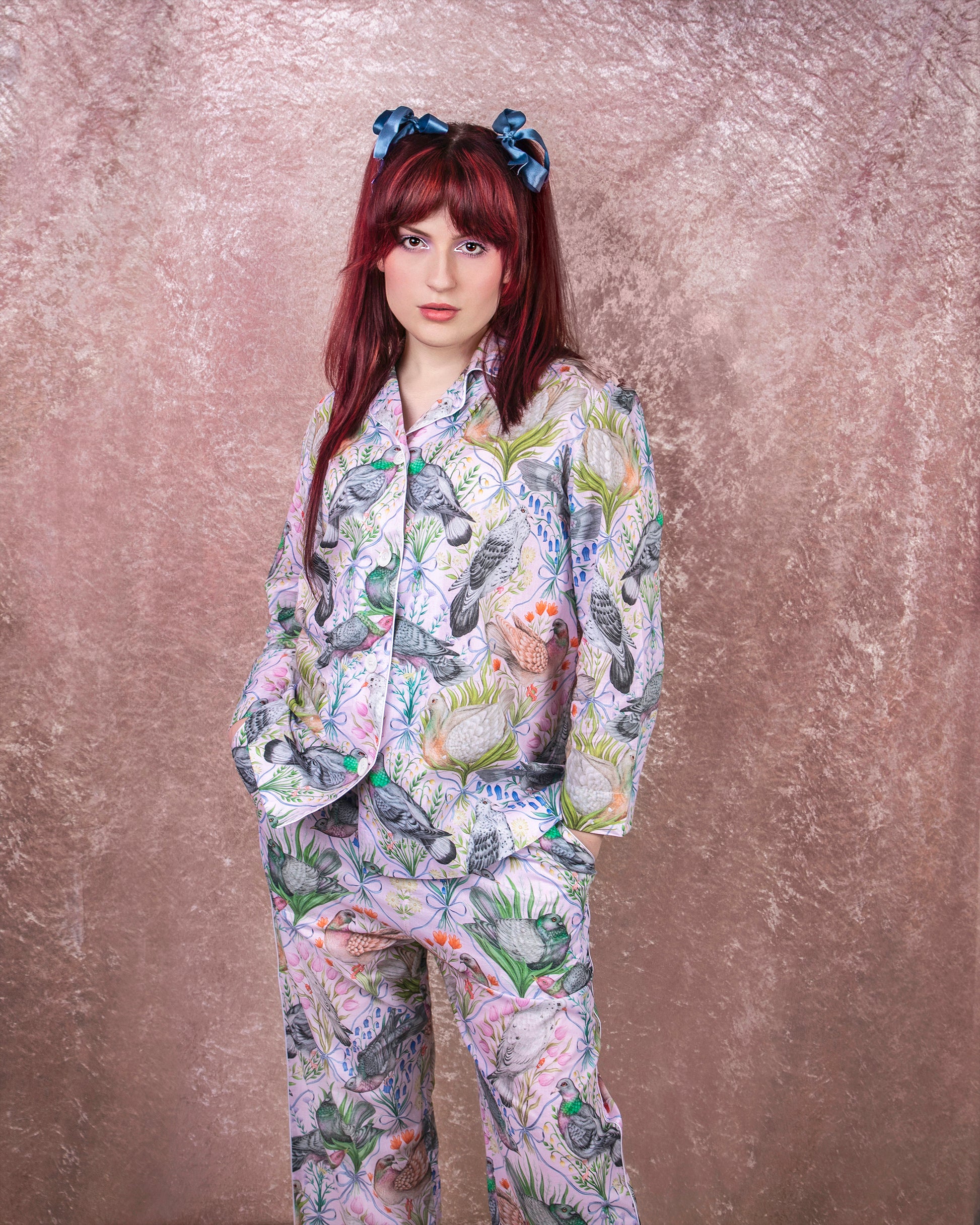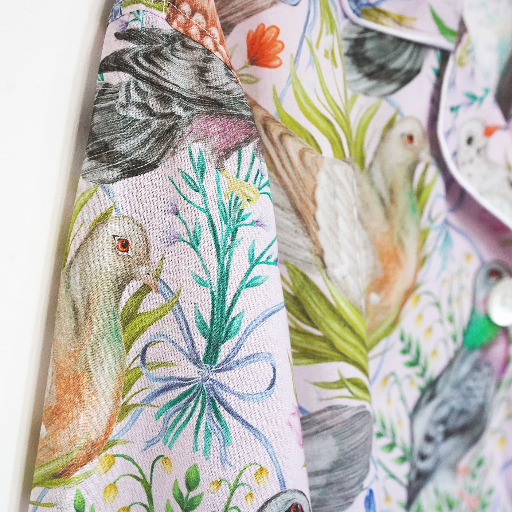 Featuring the whimsical and vibrant "Pigeon Pals" design by Catherine, these pyjamas are truly a statement piece. The design showcases charming, intricate illustrations of pigeons amidst a lush, colourful backdrop, making these PJs as delightful to look at as they are to wear.