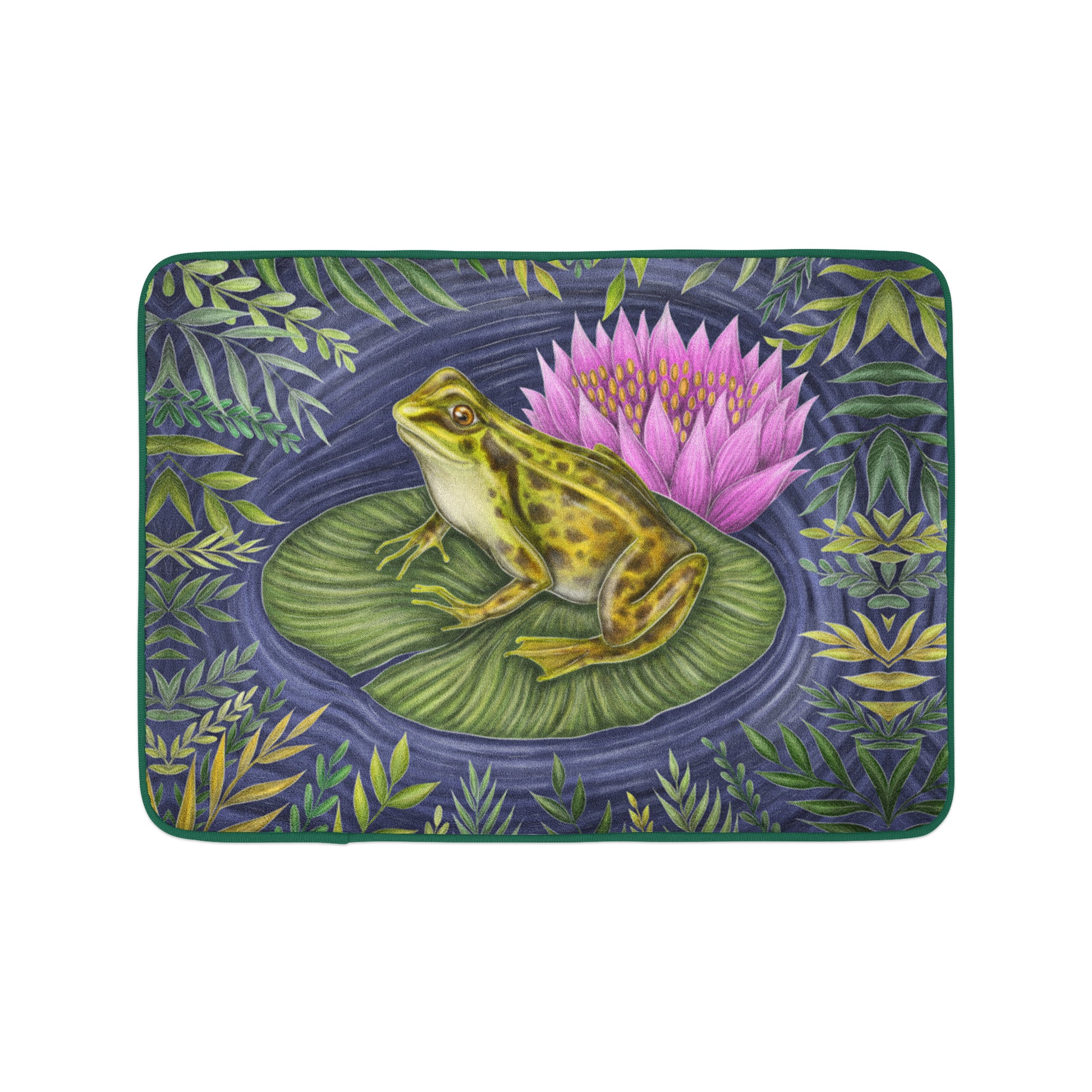 A European frog happy on his lily pad, beneath a great willow tree in a beautiful, serene lake.