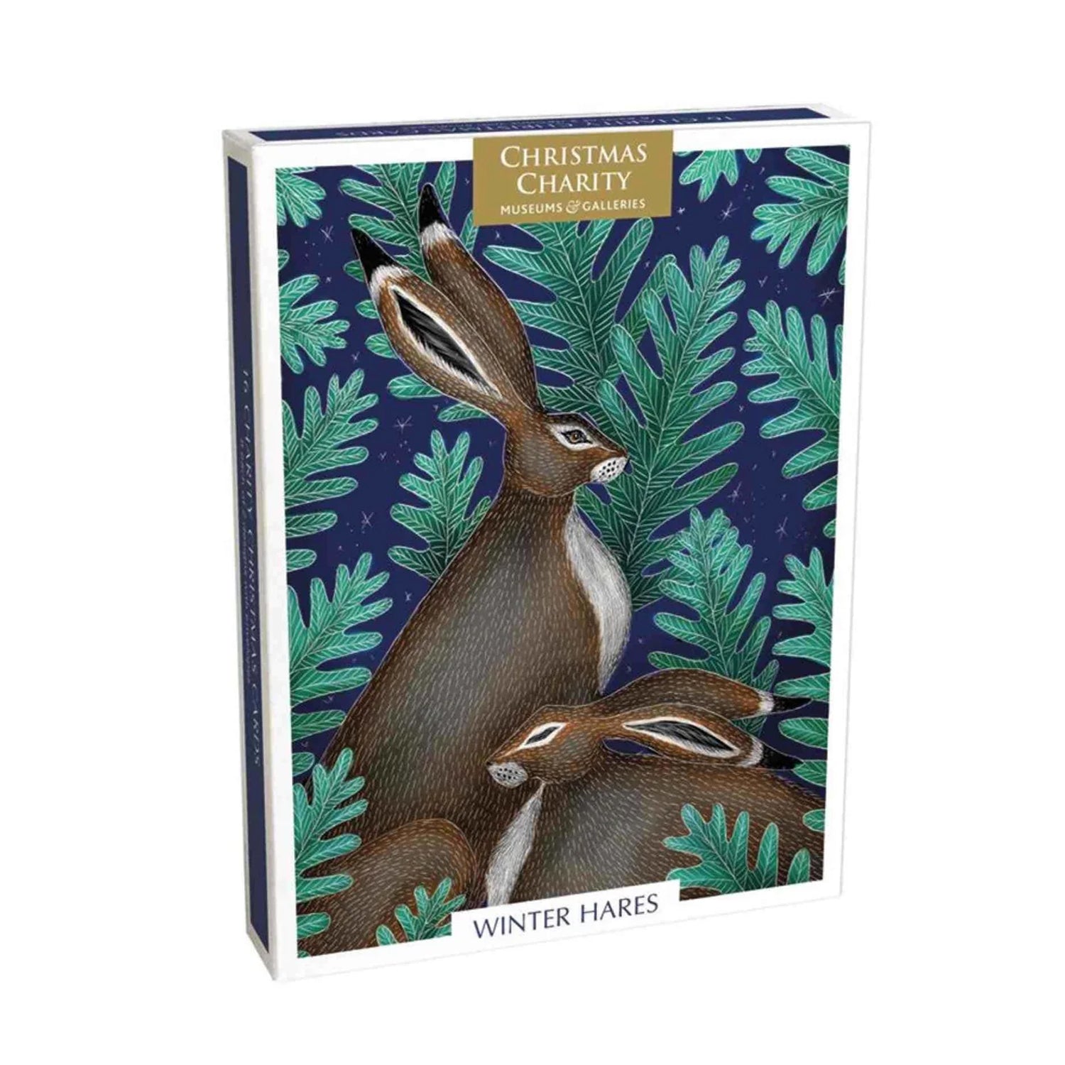 Winter Hares Charity Christmas Cards - 16 Cards - 8 each of 2 Designs